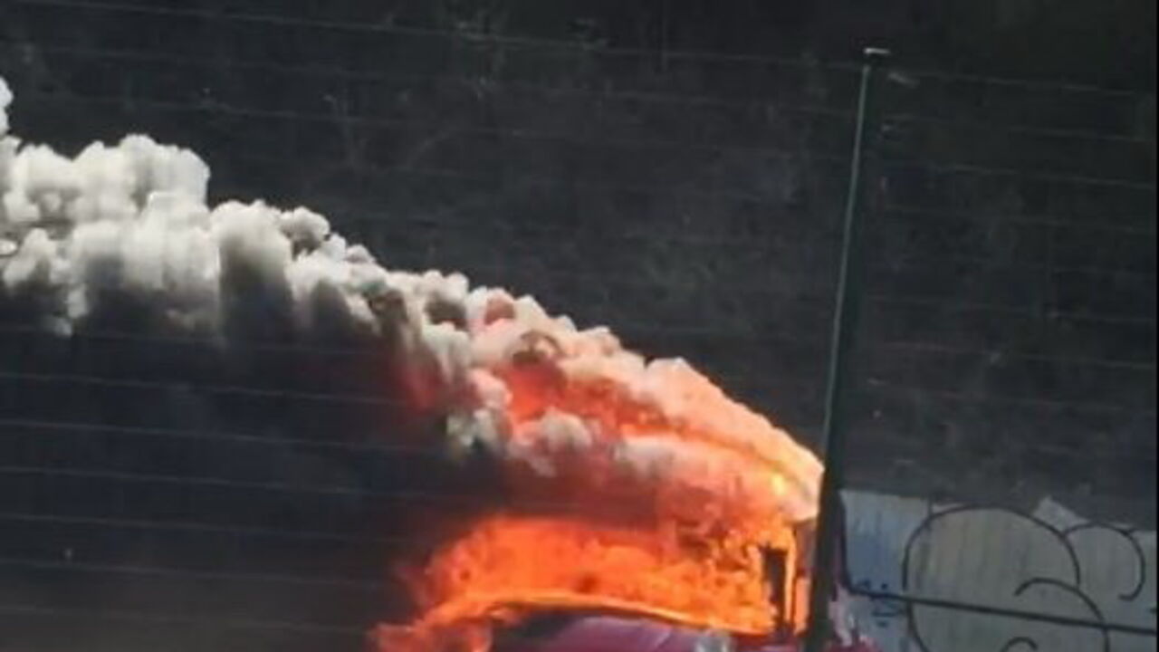 Carro em chamas na A2 em Almada. Veja as imagens